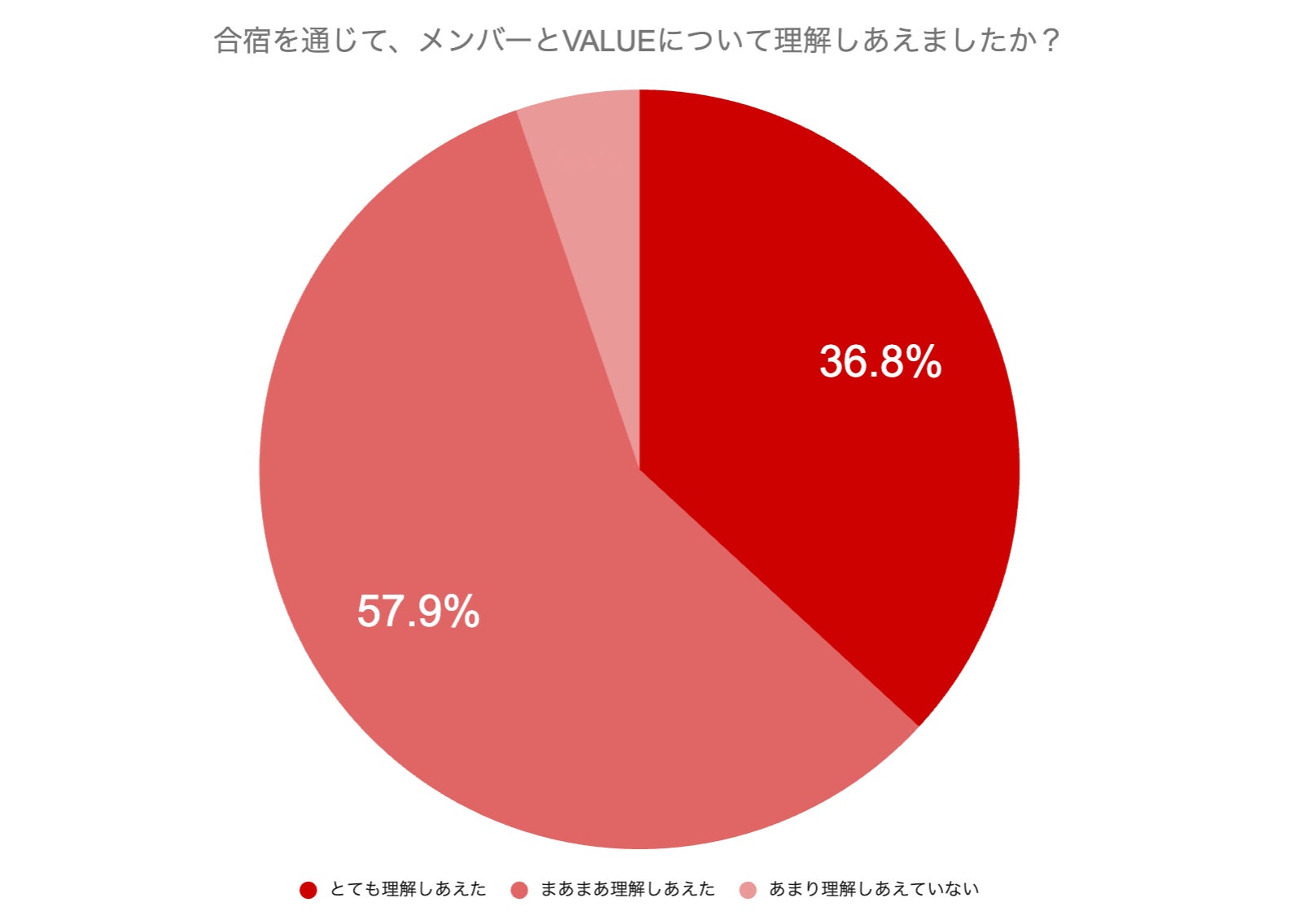 前向きな感想が多く、新入社員を含めたそれぞれのメンバーが本音を発言し合い、会社のバリューについてじっくりと考える貴重な機会になったことがうかがえました。