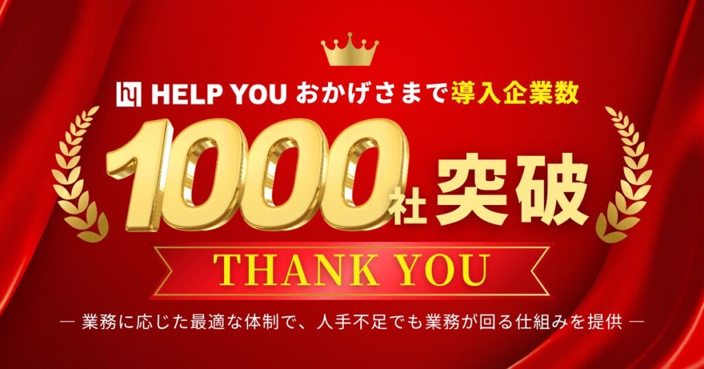 HELP YOU、導入企業1,000社を突破― 業務に応じた最適な体制で、人手不足でも業務が回る仕組みを提供 ―